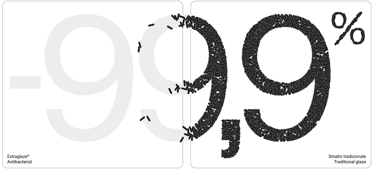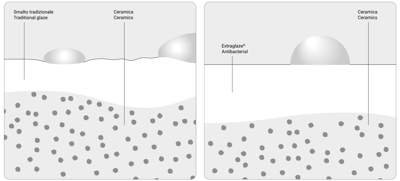 Extraglaze® Antibacterial — это не поверхностная обработка, нанесённая в конце производственного цикла, а неотъемлемая часть самого изделия! Extraglaze® наносится в процессе производства, ещё до этапа обжига!