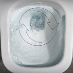 - Безободковая чаша унитаза со встроенной защитой от брызг