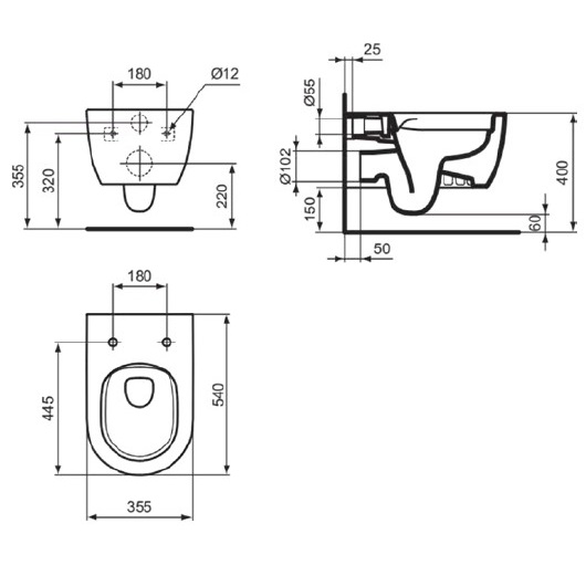 Чаша подвесного унитаза Ideal Standard Blend Curve RimLS+ T465501