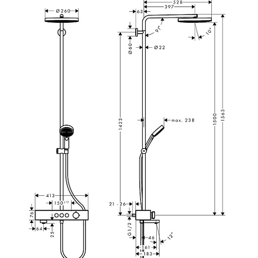 Душевая система Hansgrohe Pulsify S Showerpipe 260 1jet ShowerTablet 400 24230000