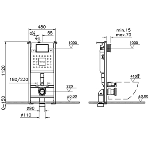 Простое обслуживание через ревизионное окно за панелью смыва без использования инструментов- Верхняя часть рамы открыта