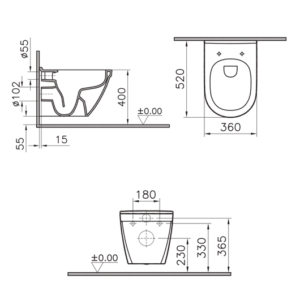 - Существенная экономия воды благодаря водосберегающему механизму смыва 3/6 л