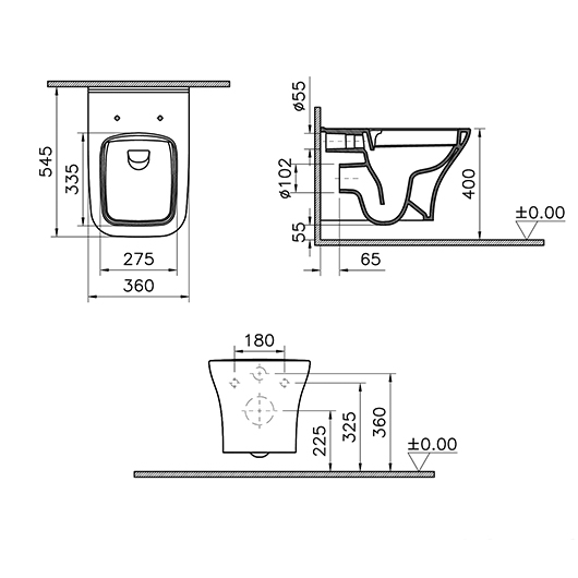 Подвесной унитаз Vitra Zentrum Square 7484B003-0075 безободковый