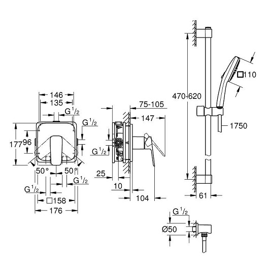 - Комплект верхней монтажной части для GROHE Rapido SmartBox 35 600/35 604 (универсальная встраиваемая часть)