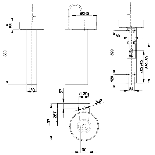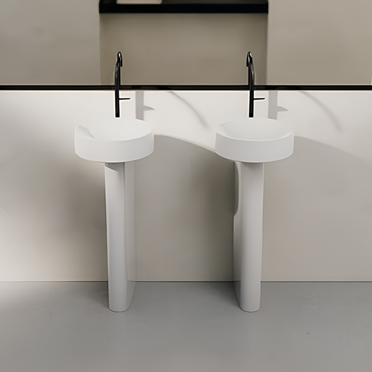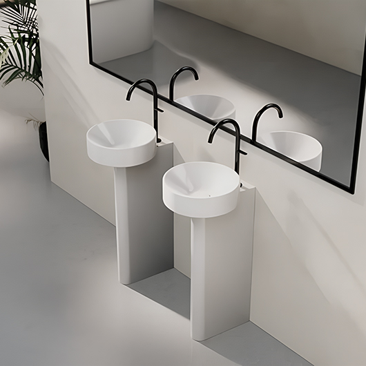 - Материал: раковина и пьедестал выполнены из глазурованной титановой стали — 3,5 мм.