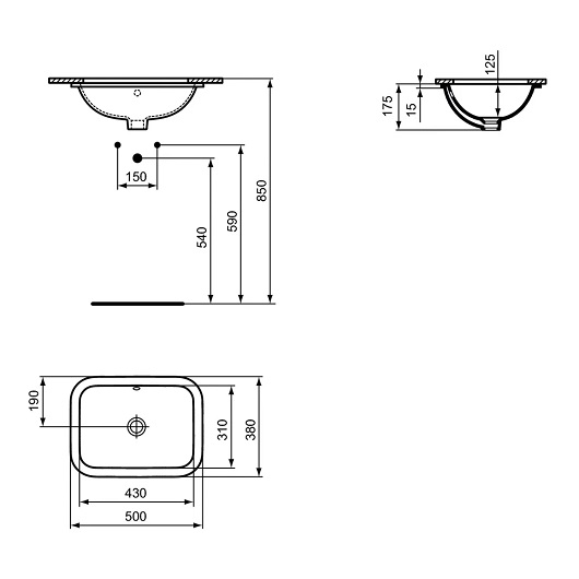 Раковина встраиваемая снизу Ideal Standard Connect E505801 (500х380 мм)
