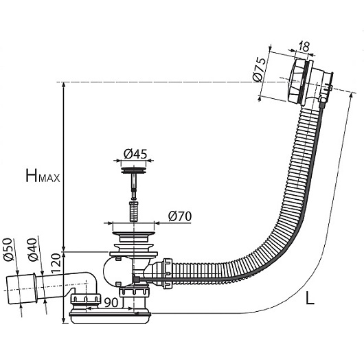 | Управление донным клапаном | поворотной ручкой на переливе |