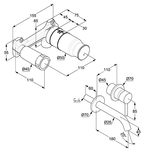 KLUDI BOZZ: комплект наружной 38244N076 и скрытой части 38243