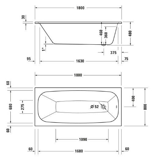 Ванна Duravit Aurena 180х80 700549000000000 (белая матовая)