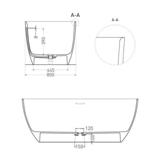 Размеры: 1700 x 800 x 595 мм- Объём до перелива: 350 л