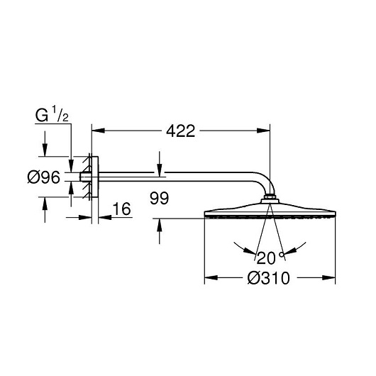 - Душевой кронштейн Rainshower 422 мм